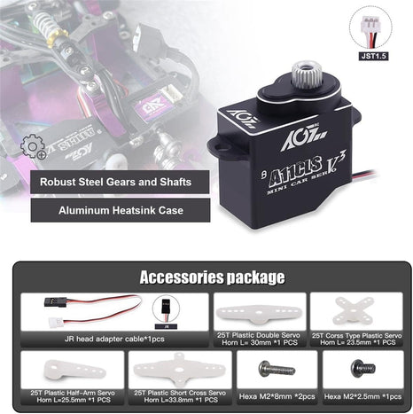 AGFRC 9g Upgrade Metal Case 0.050sec Programmable High Speed High Torque Digital 1.4KG Servo JST/JR Plug For Mini Z RC Track Car (A11CLS V3)