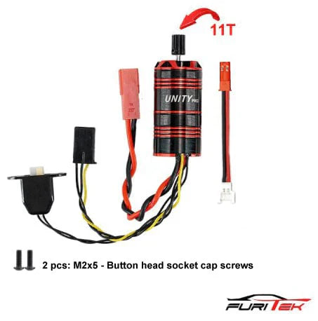 We are thrilled to unveil the Furitek UNITY PRO, the pioneering 2-in-1 brushless system tailored for 1/24 and 1/18 scale RC crawlers. As a leader in electronics for mini crawlers, Furitek continues to push boundaries, delivering cutting-edge technology that enhances your RC experience. The UNITY PRO combines a brushless motor and brushless ESC in one compact unit, equipped with FOC technology to provide unparalleled smoothness, powerful start-up punch, and seamless power transitions. This system is designed to meet the needs of serious hobbyists and competitive racers alike, offering a host of features that ensure optimal performance and convenience. This brushless system is designed to be the drop-in system that is compatible with HobbyPlus CR-18P EVO-PRO