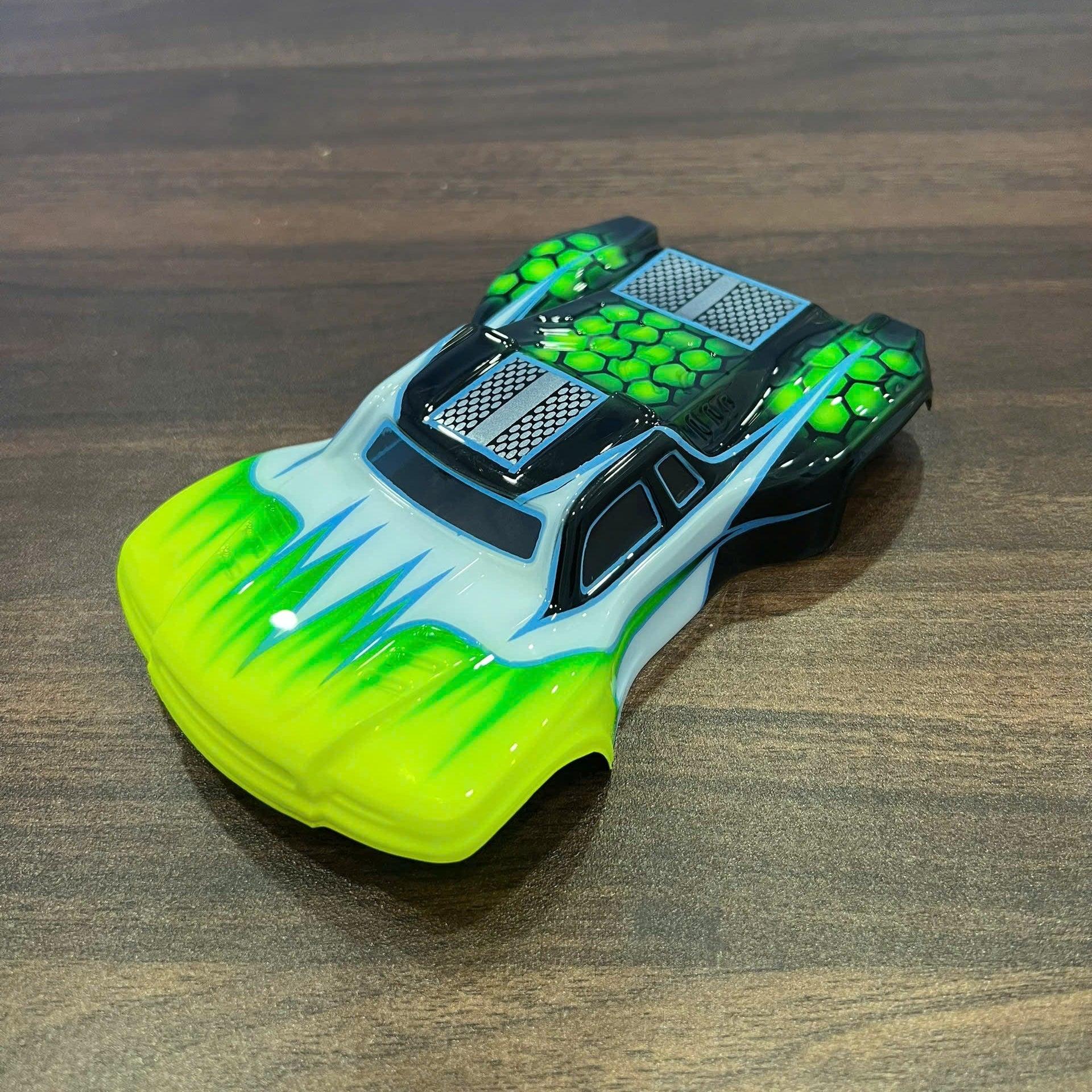 Transform your Losi Micro-B truck into a whole new class of racing with Radianz Design’s premium Lexan body. By switching to one of our custom bodies, you’re not just upgrading the look of your truck, you’re changing its identity and performance, creating a whole new class for your Micro-B on the track. Each body is crafted with precision from high-quality Lexan and airbrushed by hand, layer by layer, to deliver stunning designs with vibrant, eye-catching colors. The intricate painting details are a testament to the craftsmanship, ensuring your truck stands out from the crowd.