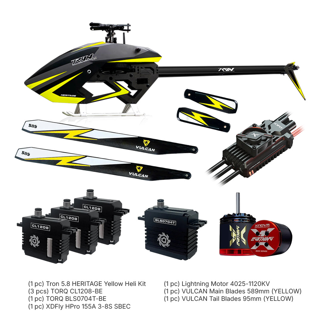 Tron 5.8 HERITAGE Helicopter Kit (w/o Blades) - Gray/Neon Yellow - Combo