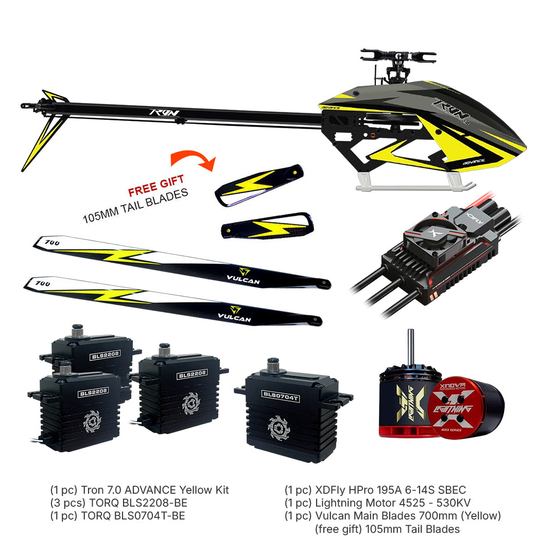 6/ VULCAN ROTORS Precision Main Rotor Blades 700mm (Yellow) free gift 105mm Tail Blades: